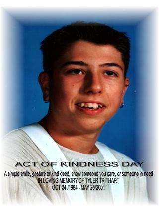Our children make many choices in their lives, as do adults, we get in our cars and drive and do many other things that put us at risk each and everyday of our lives, but we do not make the choice to be bullied to death. Killing another person is wrong, there are always ways to work things out, but taking matters into our own hands, violent ways , never ends in anything good. Tyler was a fun, outgoing, kind person who accomplished many things in his short life and touched so many other people, by showing them that it was ok to help and be there for others, none of us are perfect, but we all deserve to live, and noone should have to right to take that away from us.